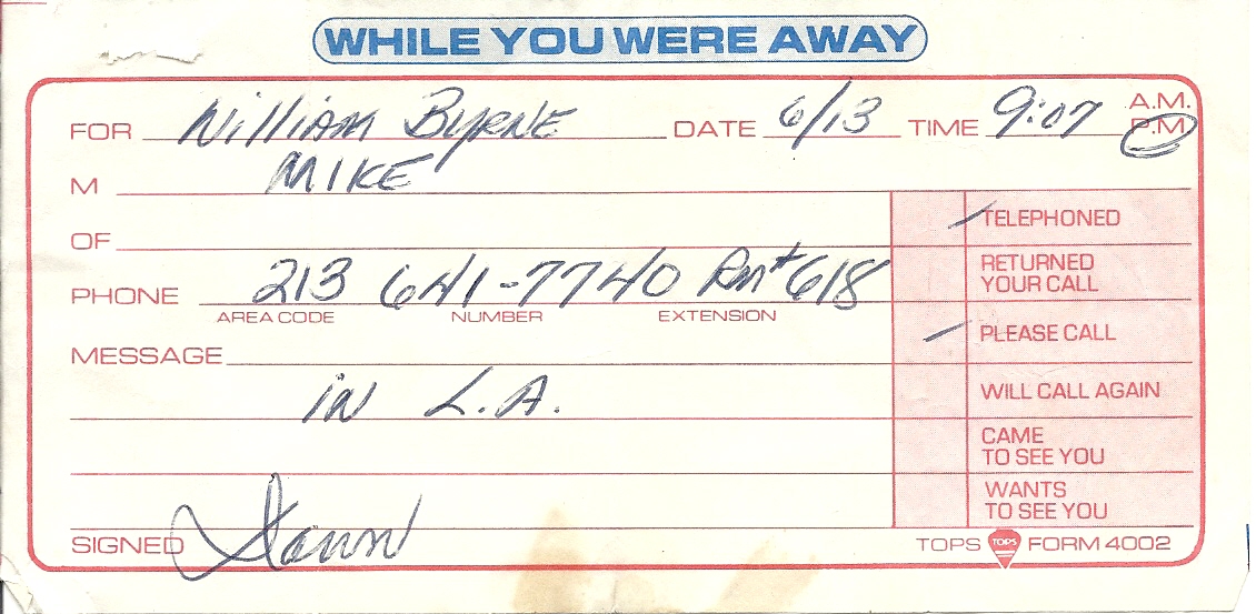 - Drive to SF day - - - Mike Called In LA - Bill goes to Candlestick |